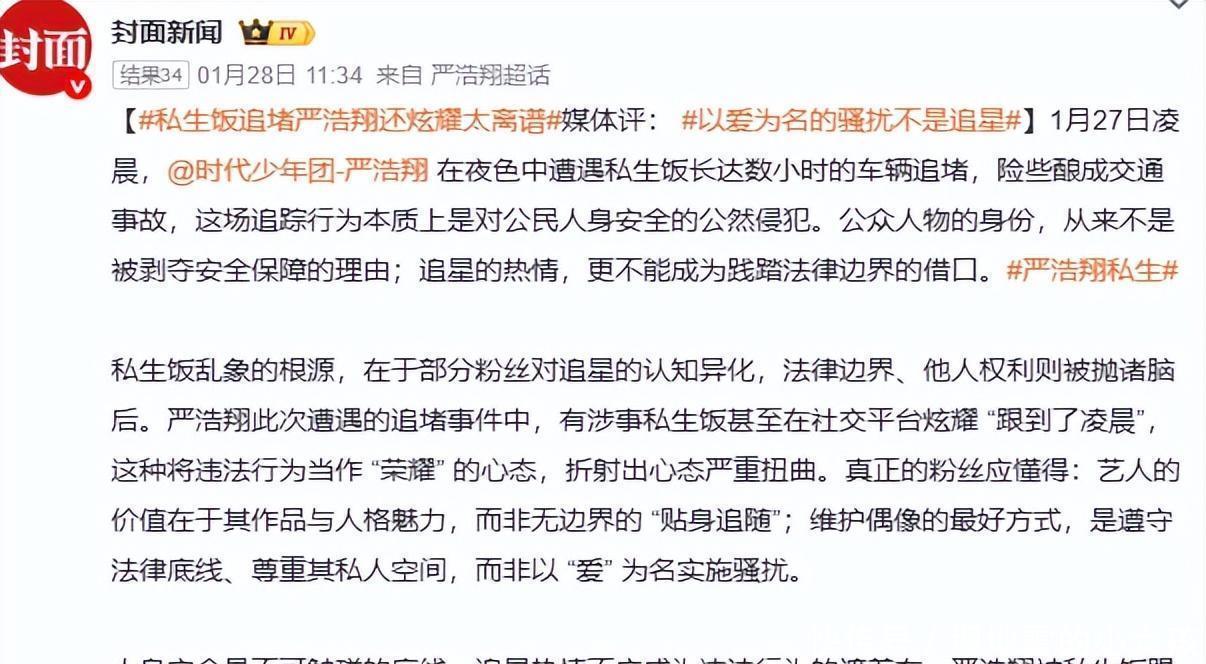 这已经不是第一次了。去年在长沙,他们就经历过疯狂追车。就在半个月前,成员严浩翔还被私生饭跟车好几个小时,差点出车祸。